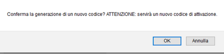 Nota bene: se l’utente ripete il passo 1, cioè clicca nuovamente il pulsante Genera un nuovo codice, sarà costretto a ricontattare l’ufficio commerciale per ottenere un nuovo codice di attivazione come da avviso che appare a video